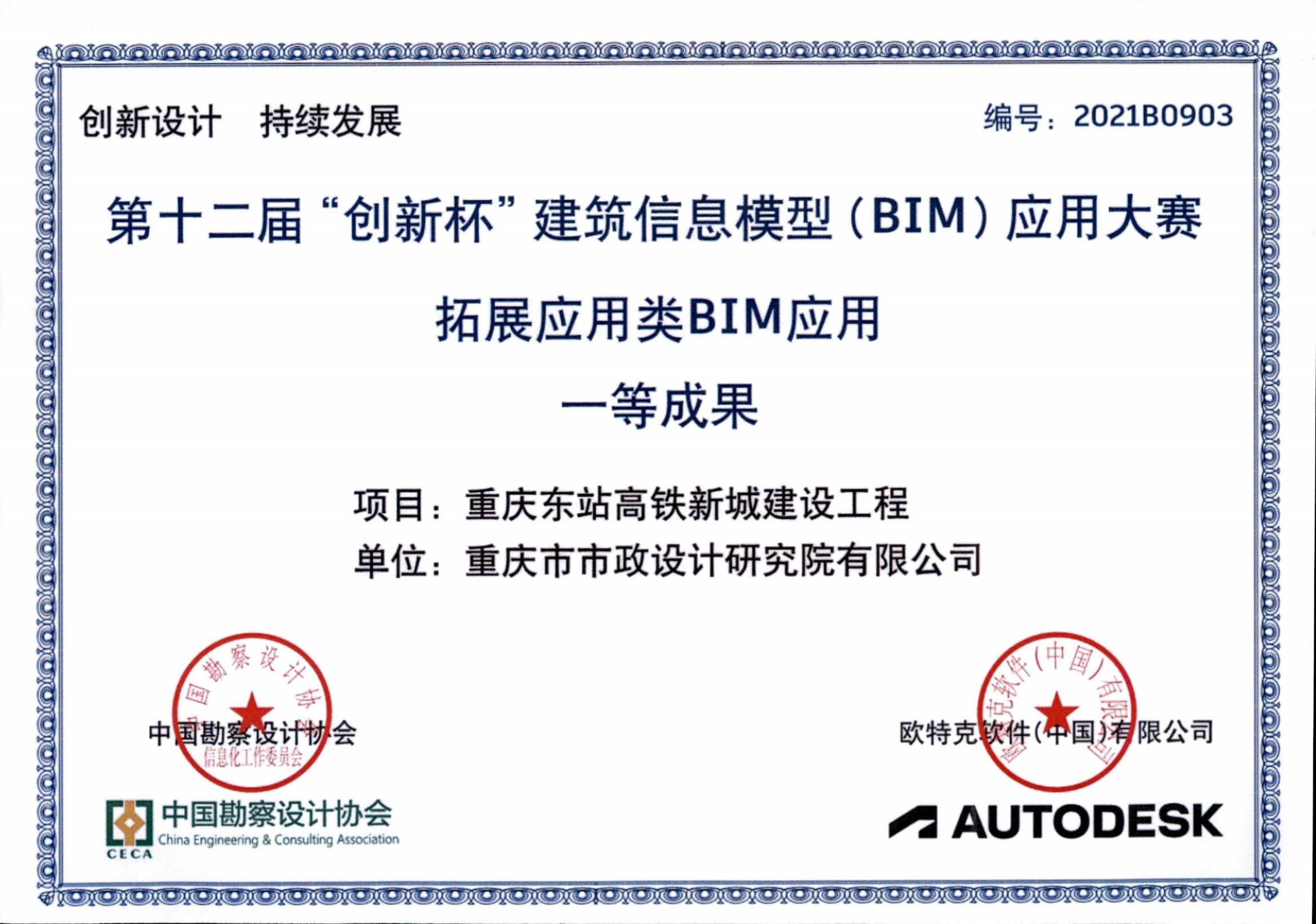 工程名称:重庆东站高铁新城建设工程 奖项名称:第十二届“创新杯”建筑信息模型(BIM)应用大赛拓展应用类BIM应用一等成果