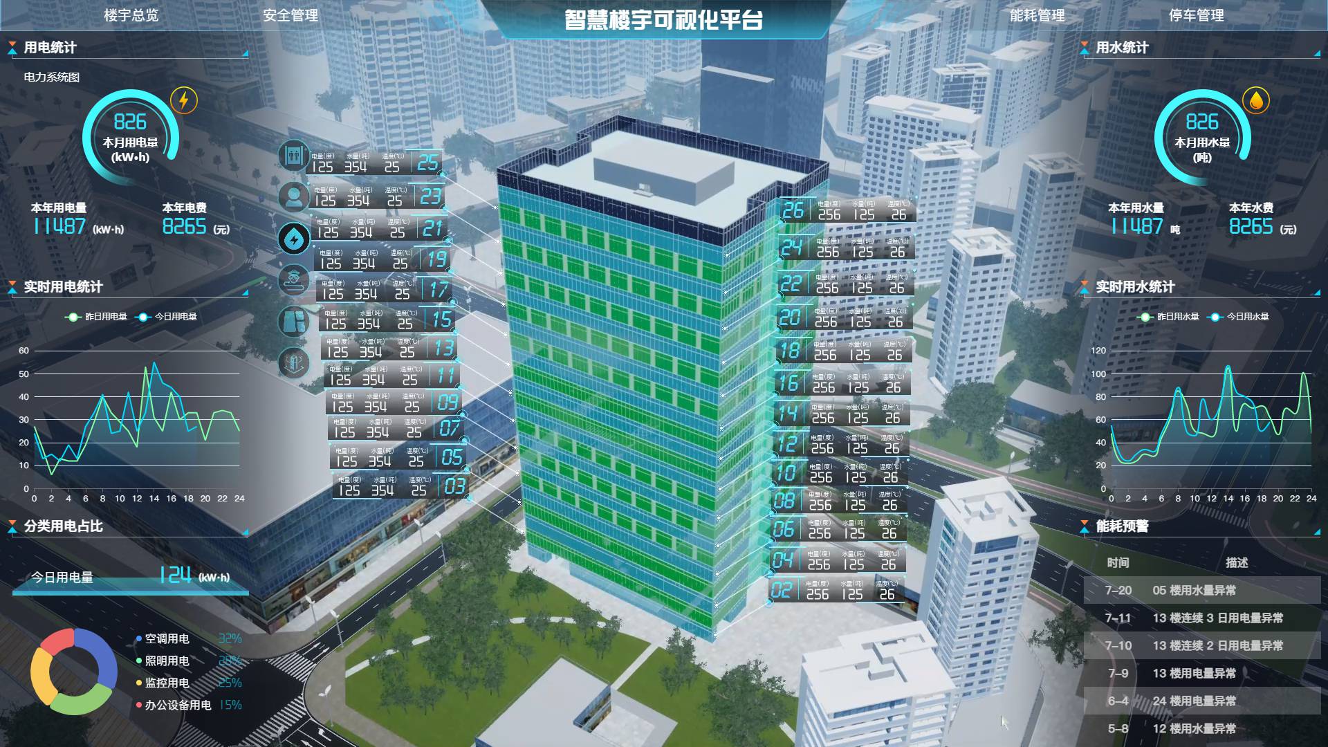 7、 能耗管理:能耗分区分项统计分析,精细化管理能源、可视化的能耗展示、数据支撑的能耗决策模型,为节能提供科学决策;