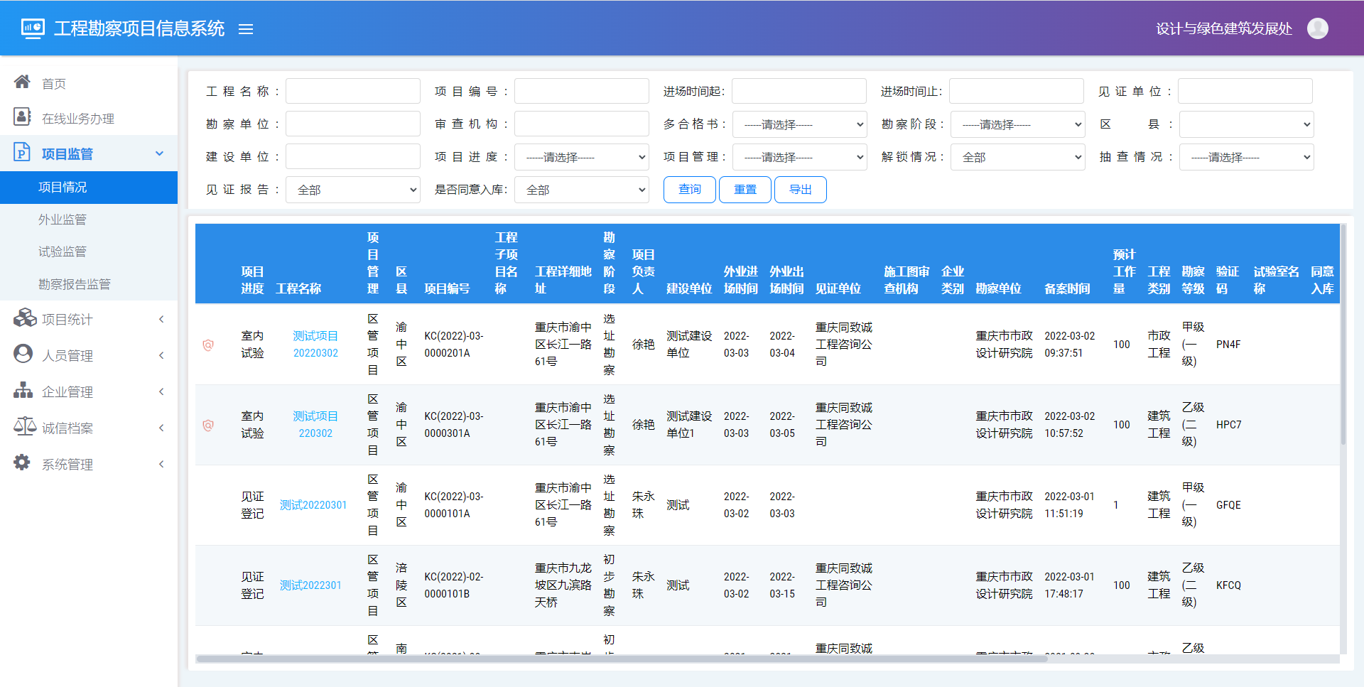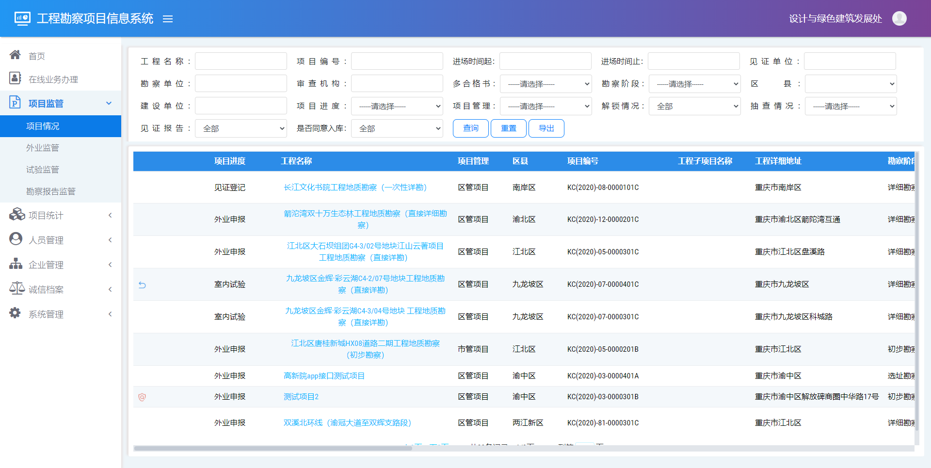为掌握和分析城市工程状况和利用条件,采用GIS、BIM、TIN及大数据融合与挖掘等技术进行结合与创新,研发城市工程勘察信息管理系统。系统以工程勘察钻孔资料为基础,融合区域地质构造纲要、水文等地质环境相关要素,跟踪管理工程勘察项目进展情况和项目勘察成果质量,建立城市工程地质数据信息库,通过三维可视化技术,实现工程勘察项目远程智能管理和多层次多角度多维度的管理分析,为工程项目规划、建设提供技术支撑。